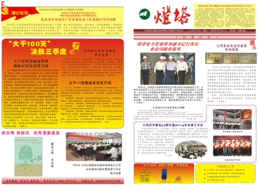 2014年6月26日,國能中電塔山維護項目部參加山西漳電大唐塔山發(fā)電公司召開的“大干100天、決勝三季度”專項活動動員會,并與業(yè)主簽訂了安全生產(chǎn)責任狀。項目部為此制定了各項組織、技術、安全措施。同時,項目部專題稿件“大干100天,脫硫在行動”榮登于塔山發(fā)電公司《塔山燈塔報》第23期一、二版。
